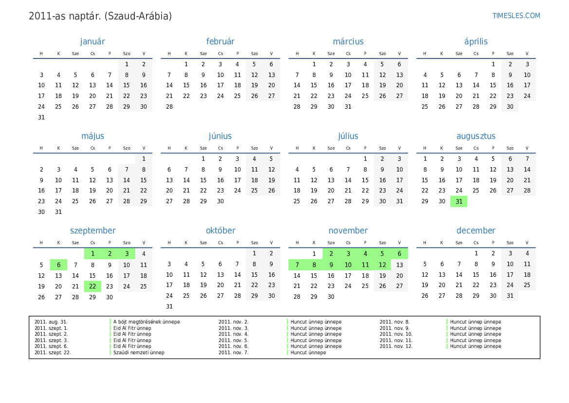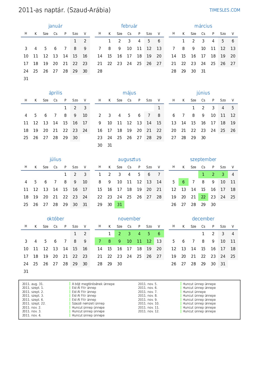 2011. szept. 5. Eid al-Fitr Holiday (csak az állami szektorban)