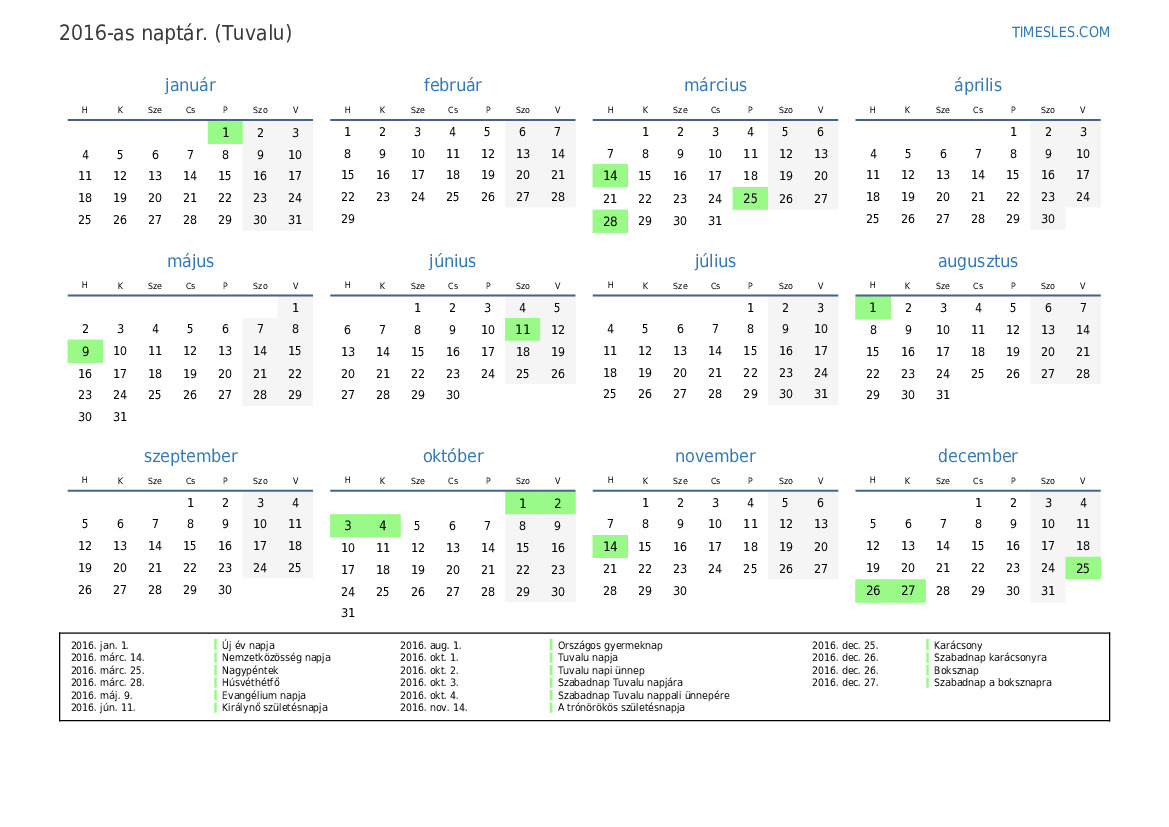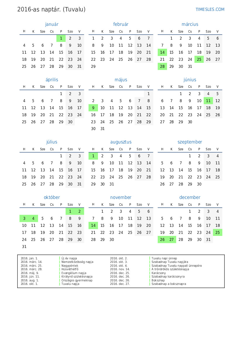 2016. okt. 4. Szabadnap Tuvalu nappali ünnepére