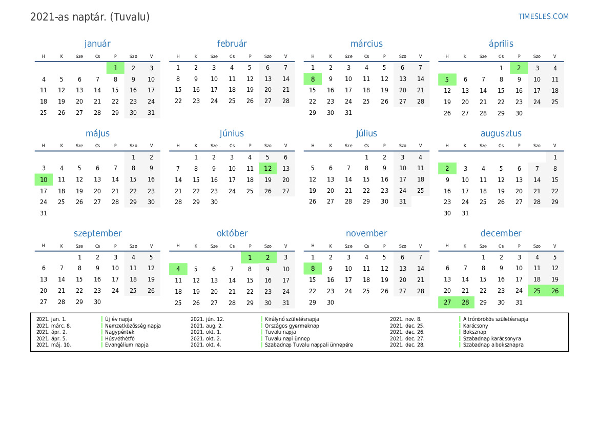 2021. okt. 4. Szabadnap Tuvalu nappali ünnepére