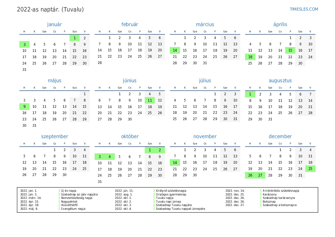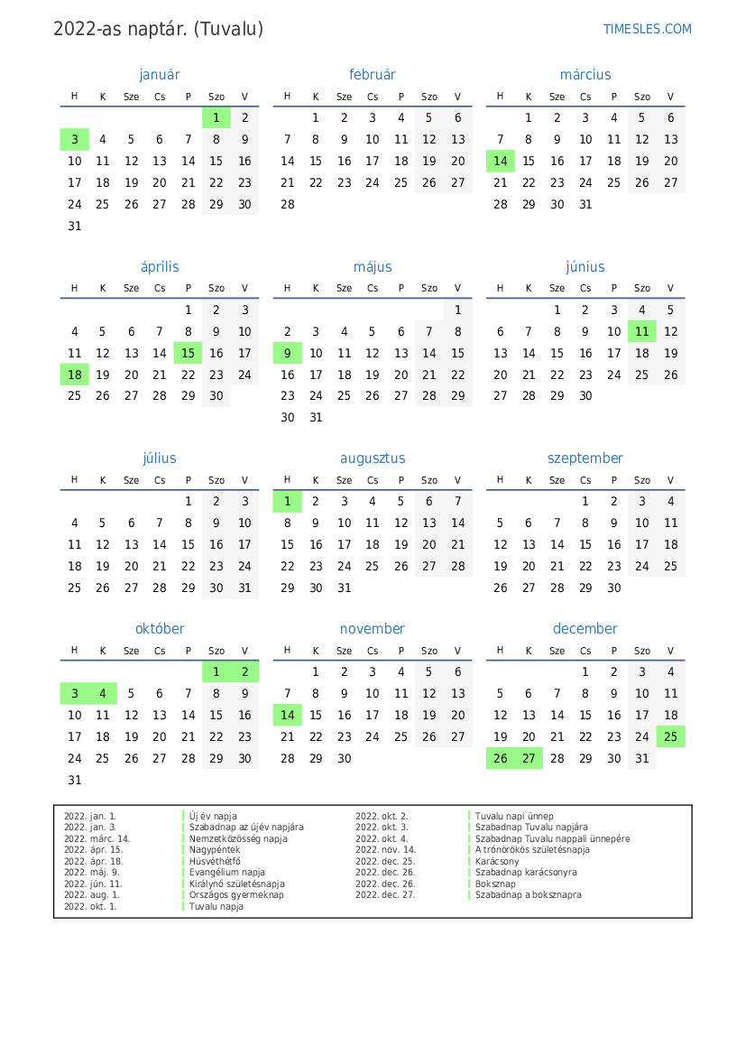 2022. okt. 4. Szabadnap Tuvalu nappali ünnepére