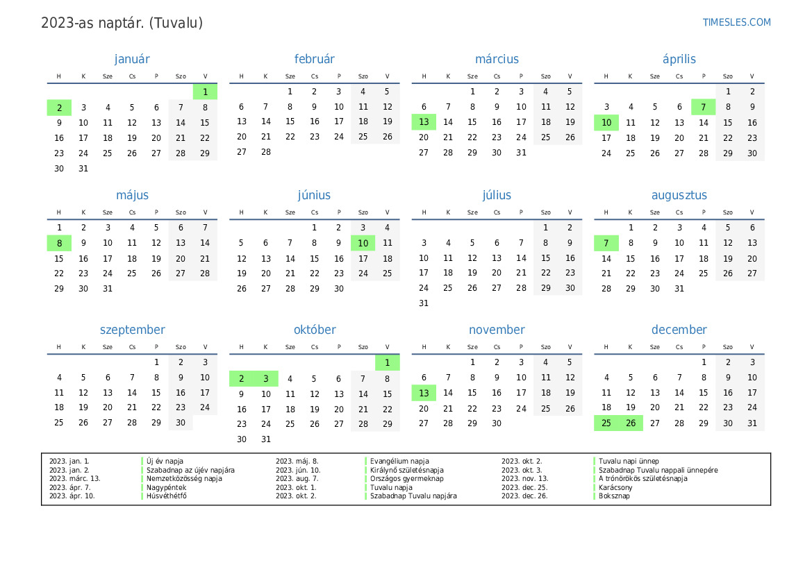 2023. okt. 3. Szabadnap Tuvalu nappali ünnepére