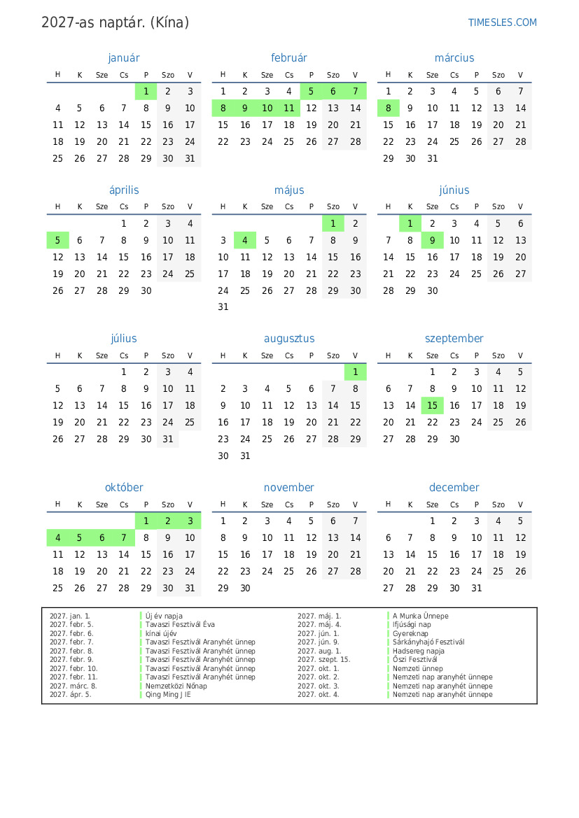 2027. febr. 10. Tavaszi Fesztivál Aranyhét ünnep