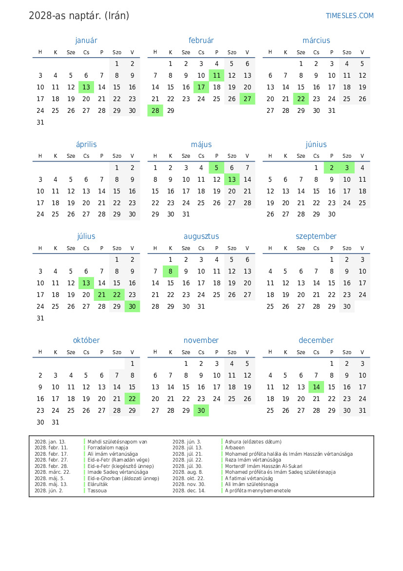 2028. febr. 27. Eid-e-Fetr (Ramadán vége)