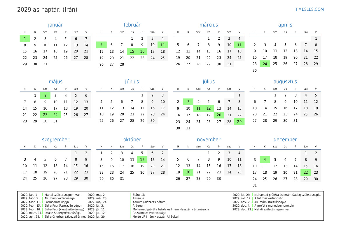 2029. febr. 15. Eid-e-Fetr (Ramadán vége)