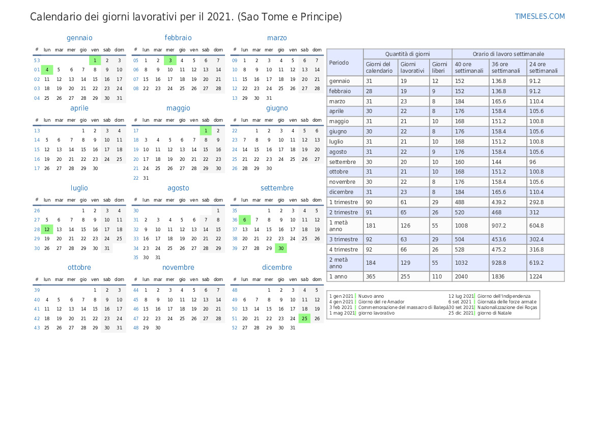 Calendario di giugno 2021 giorni lavorativi per Sao Tome e Principe