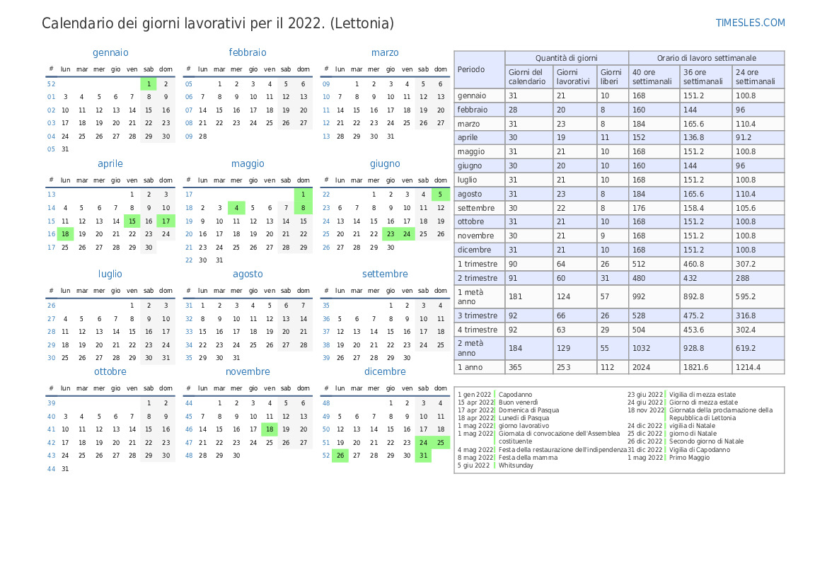 Scarica e stampa il calendario dei giorni lavorativi in PDF con giorni festivi e fine settimana per il 3 trimestre 2022 per la Lettonia