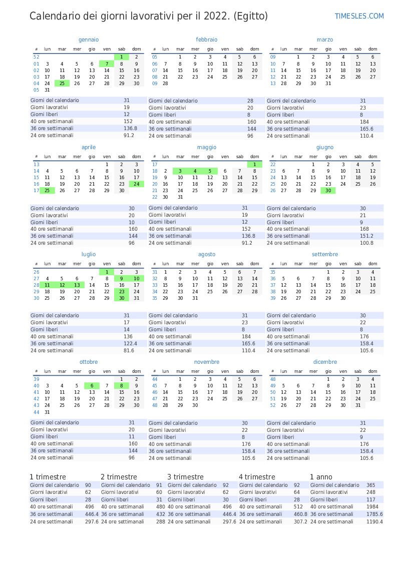 Giorni di riposo per dicembre 2022 per l'Egitto