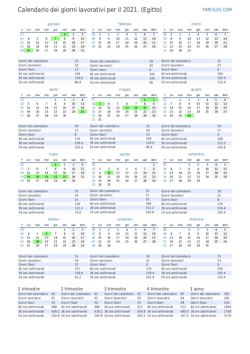 | Giorni lavorativi | 21 |