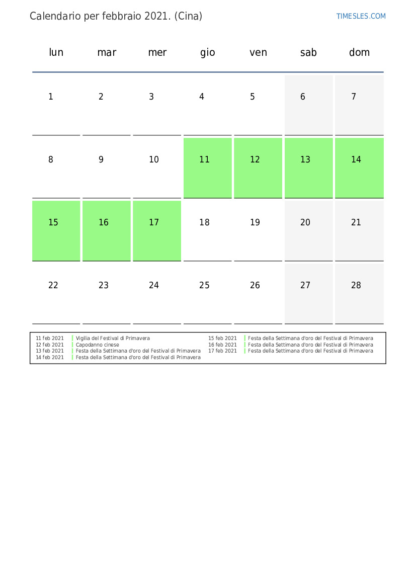 14 feb 2021 Festa della Settimana d'oro del Festival di Primavera