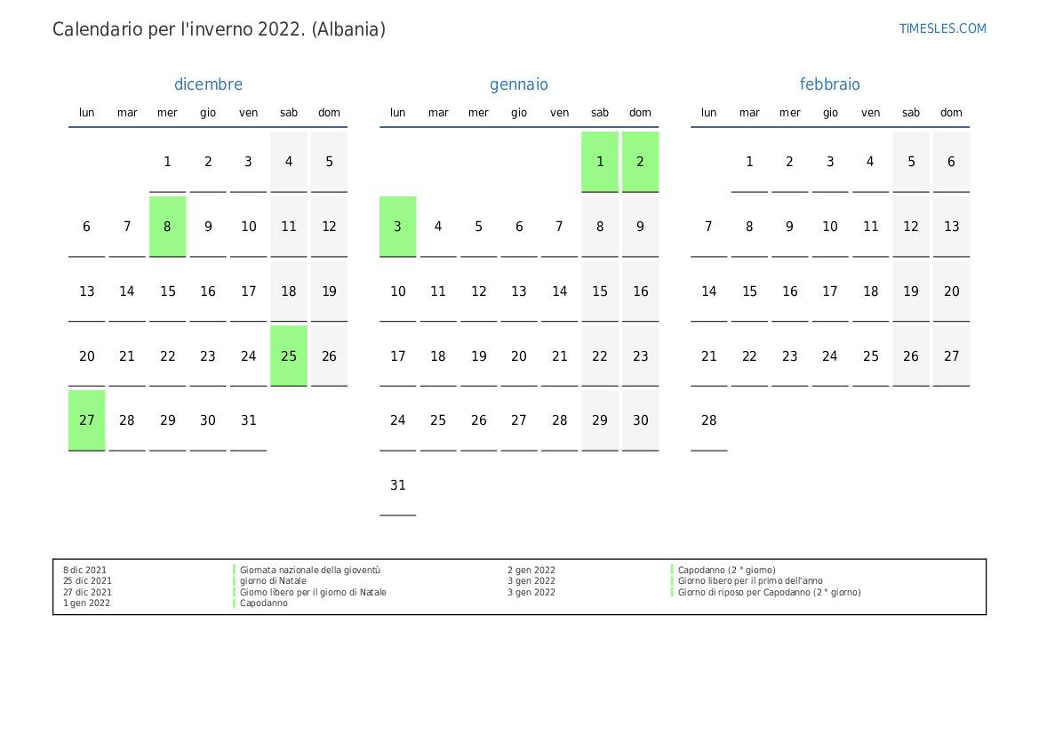 Calendario per l'autunno 2022 per l'Albania
