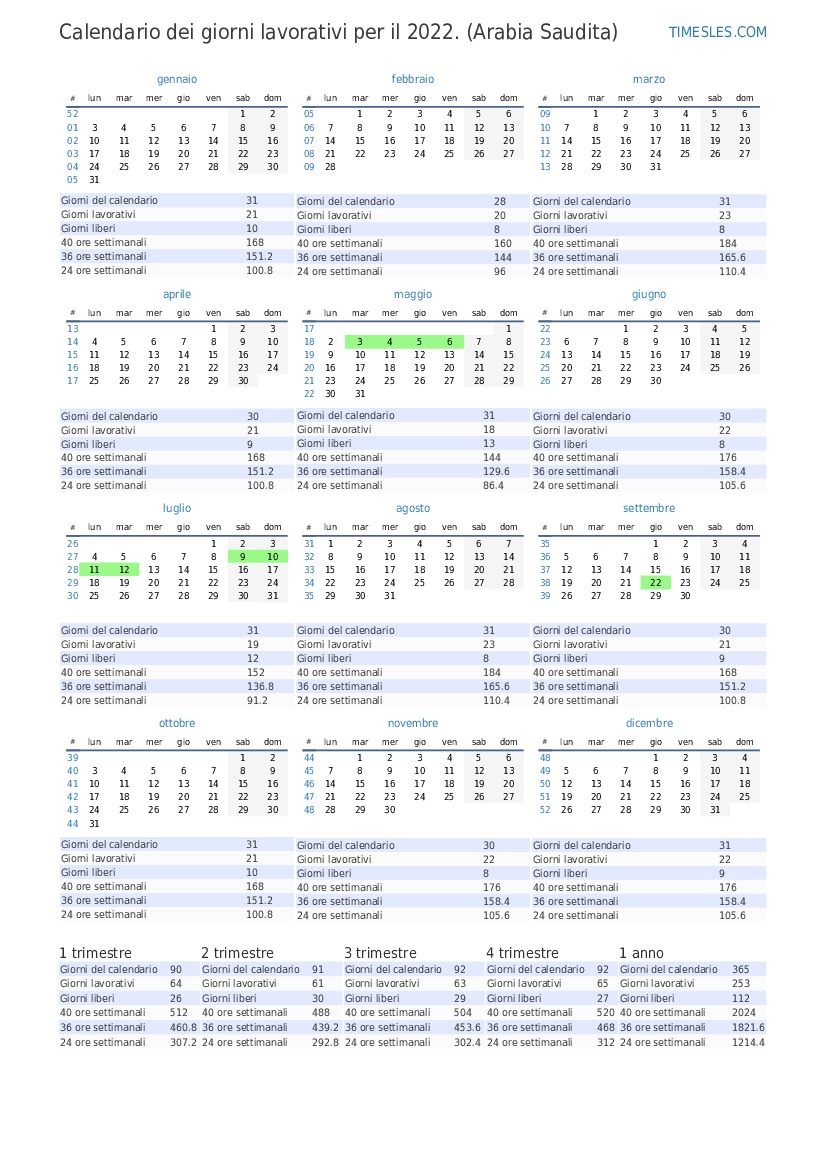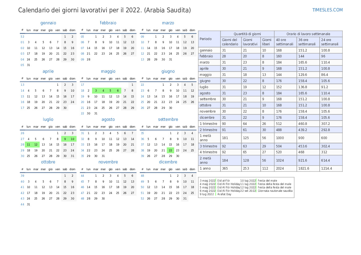 Giorni lavorativi per novembre 2022 per l'Arabia Saudita