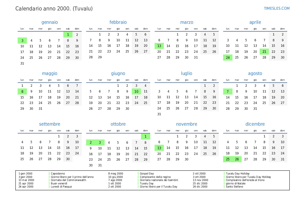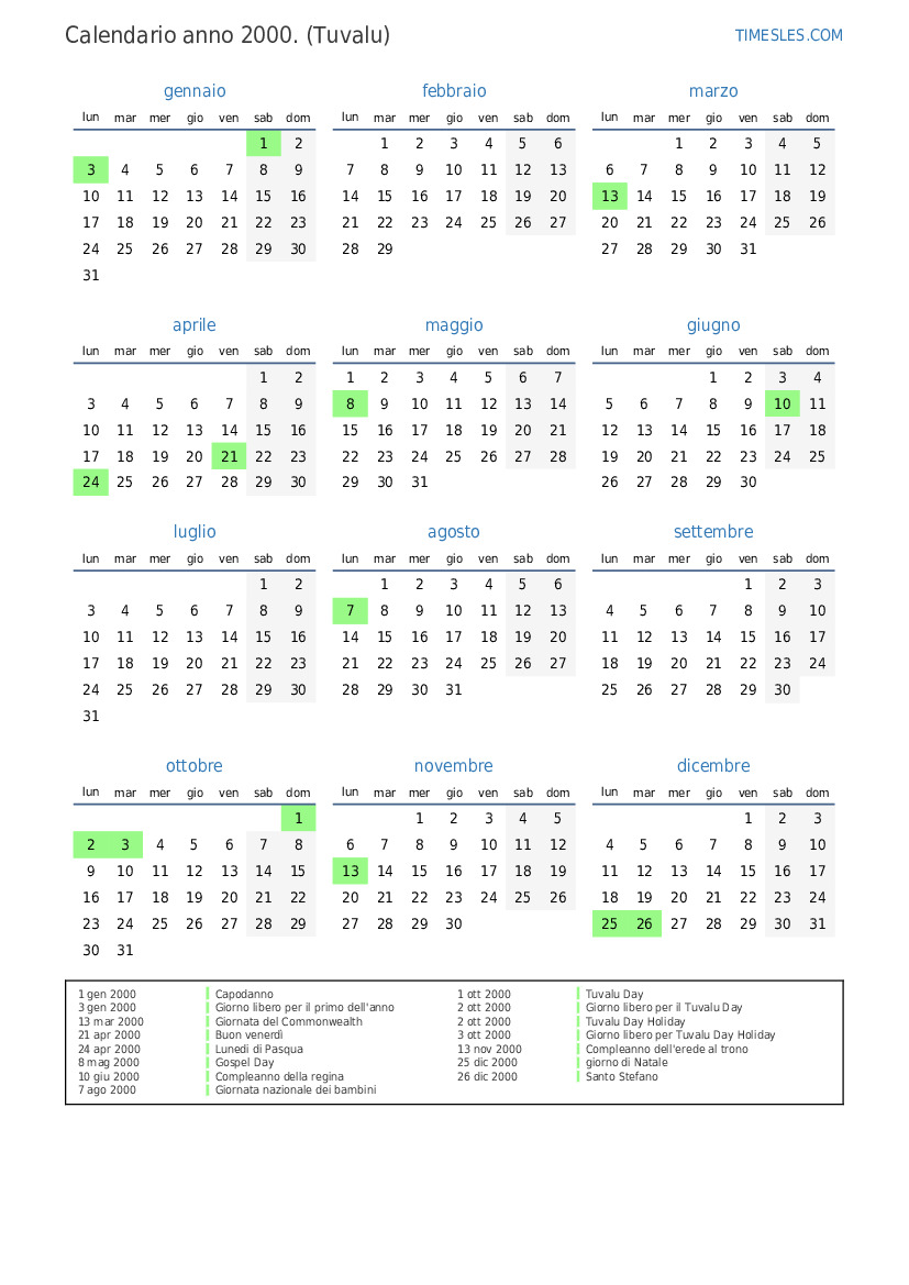 3 ott 2000 Giorno libero per Tuvalu Day Holiday