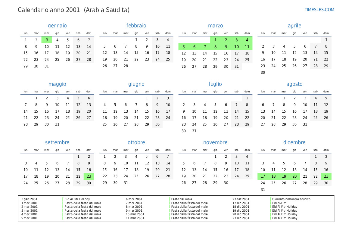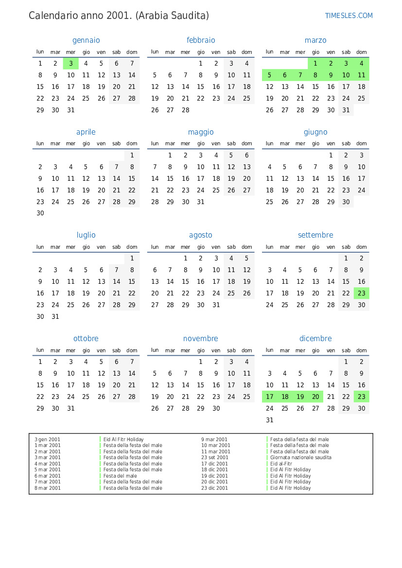 1 gen 2001 Eid al-Fitr Holiday (solo settore pubblico)