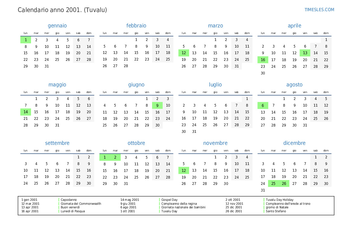 2 ott 2001 Tuvalu Day Holiday