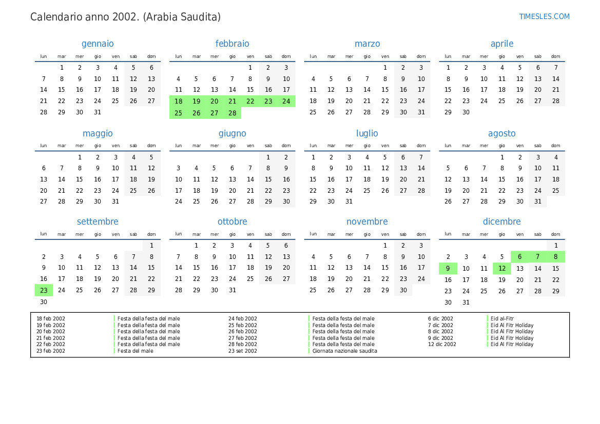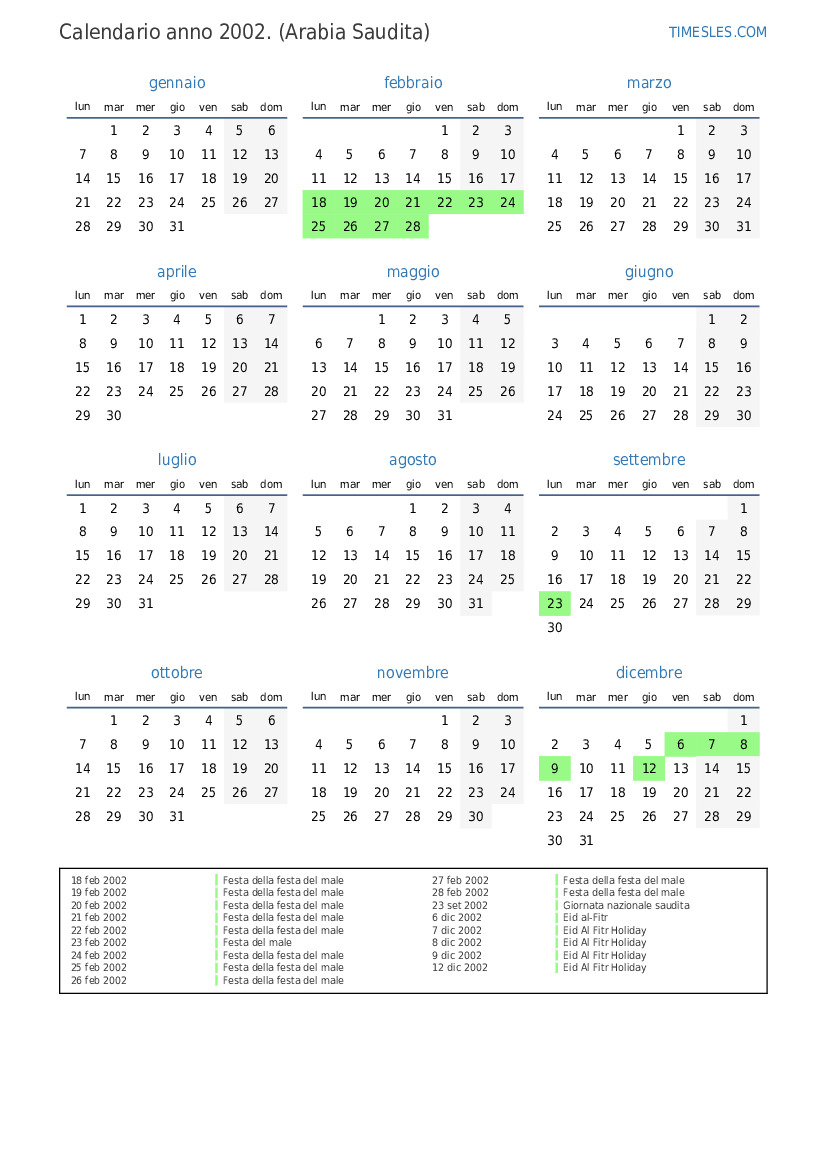 10 dic 2002 Eid al-Fitr Holiday (solo settore pubblico)