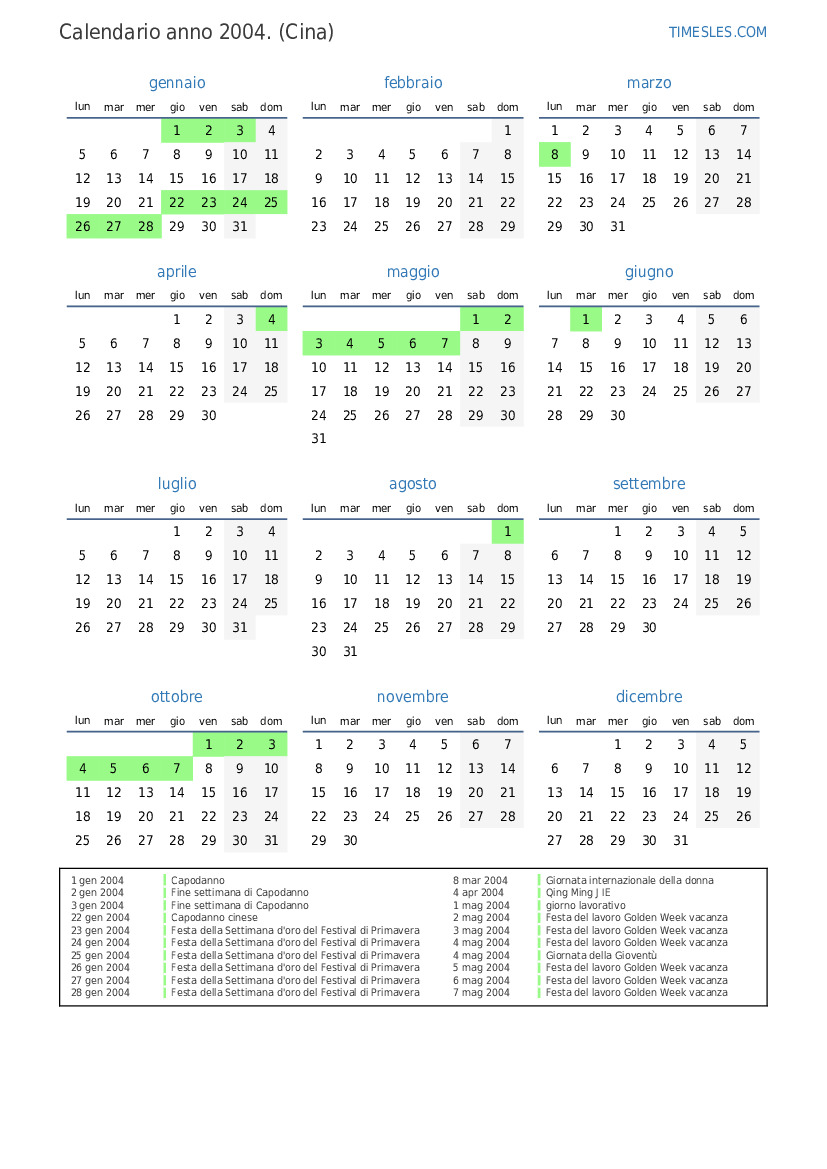 2 mag 2004 Festa del lavoro Golden Week vacanza