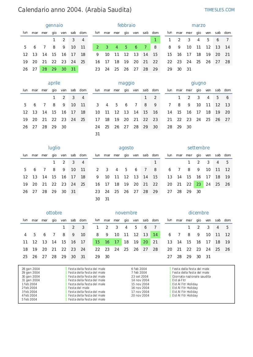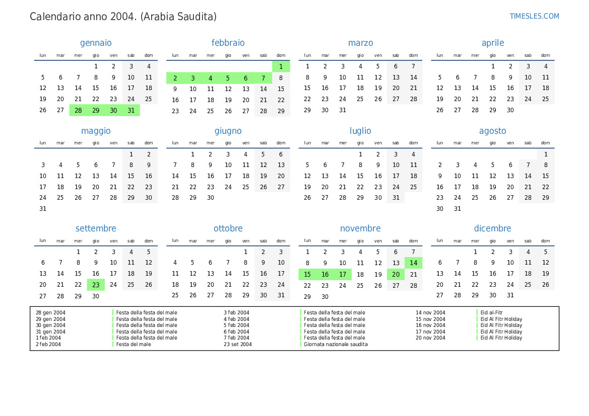 18 nov 2004 Eid al-Fitr Holiday (solo settore pubblico)