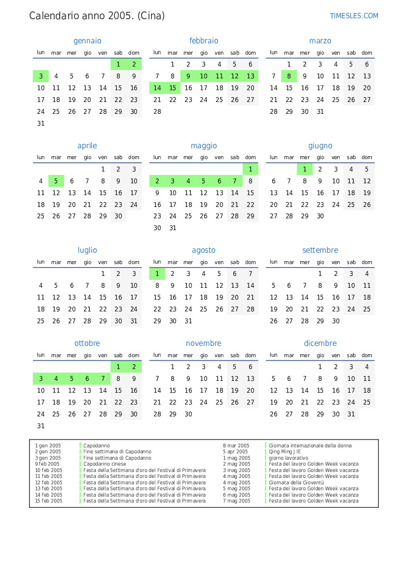 2 mag 2005 Festa del lavoro Golden Week vacanza