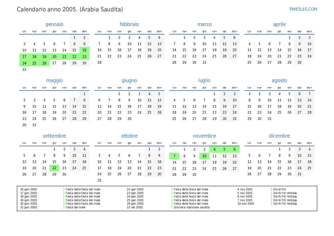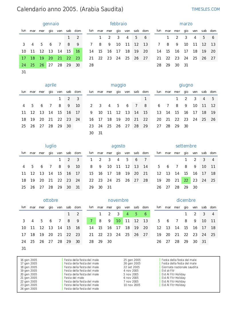 9 nov 2005 Eid al-Fitr Holiday (solo settore pubblico)
