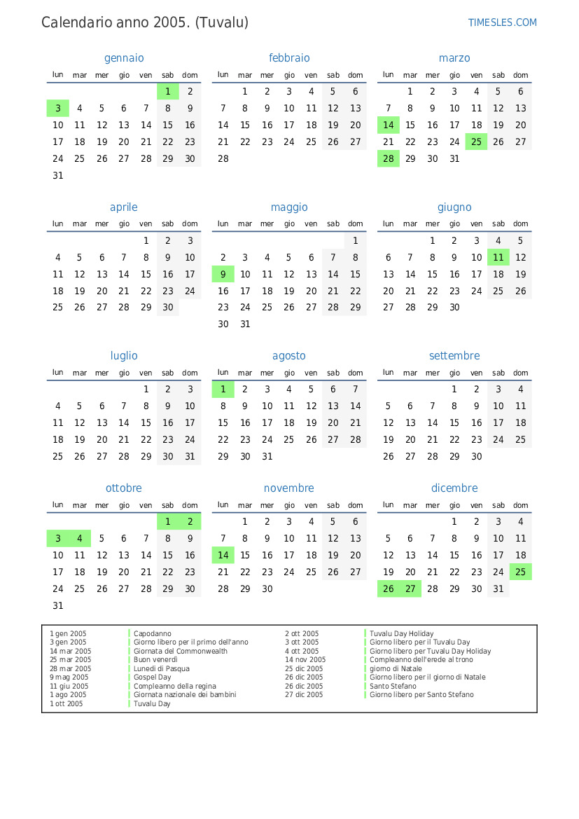 4 ott 2005 Giorno libero per Tuvalu Day Holiday