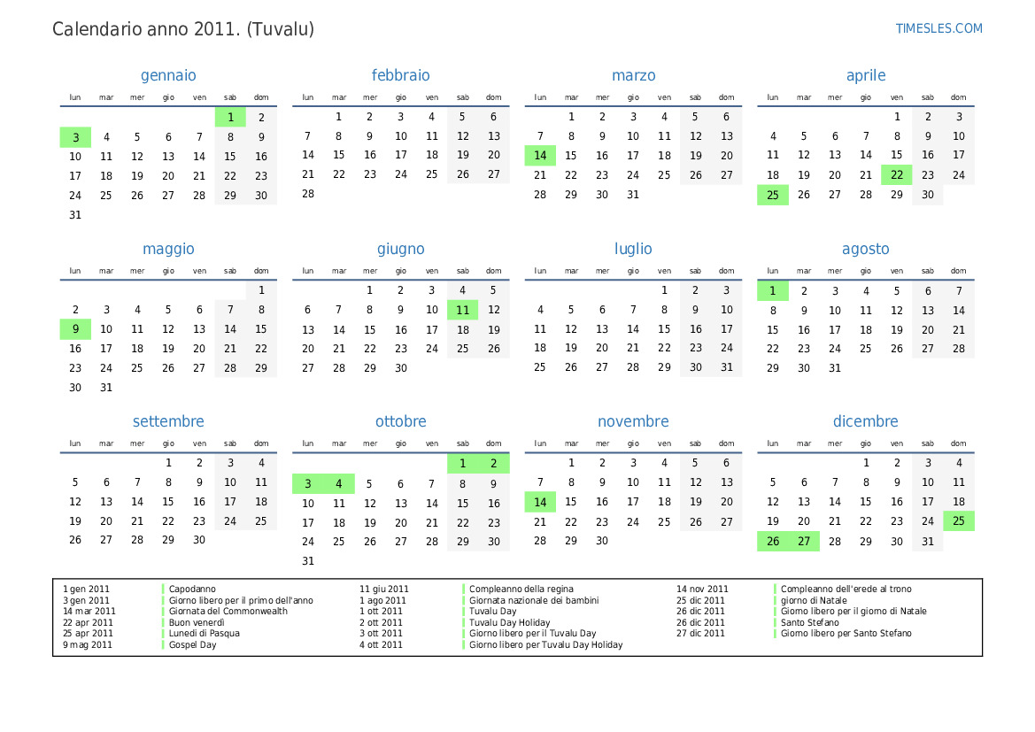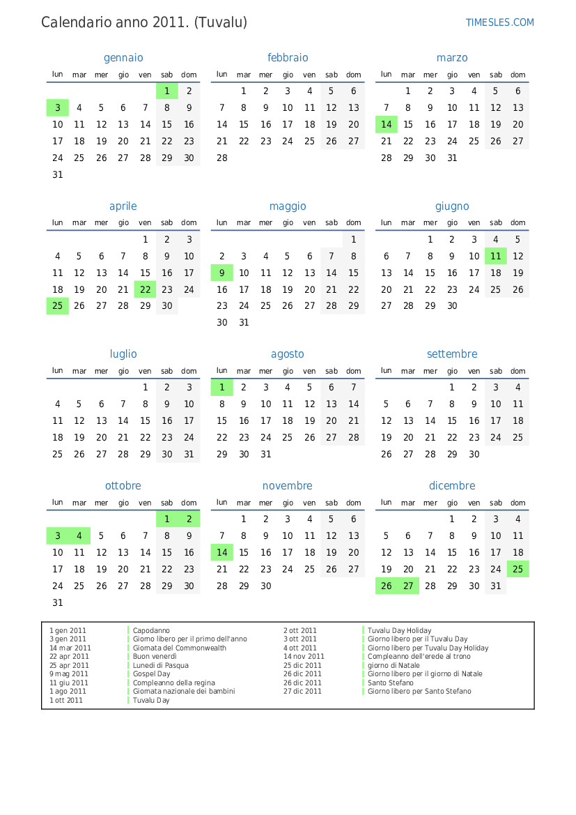 4 ott 2011 Giorno libero per Tuvalu Day Holiday