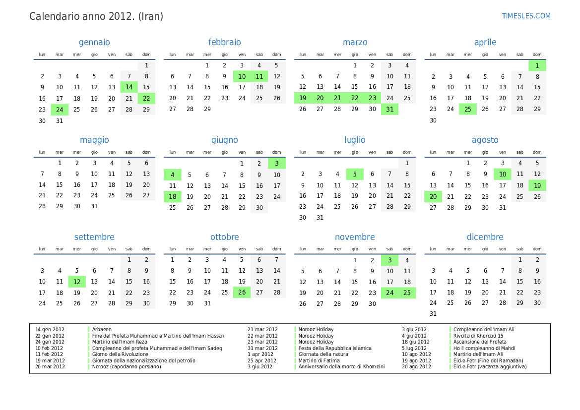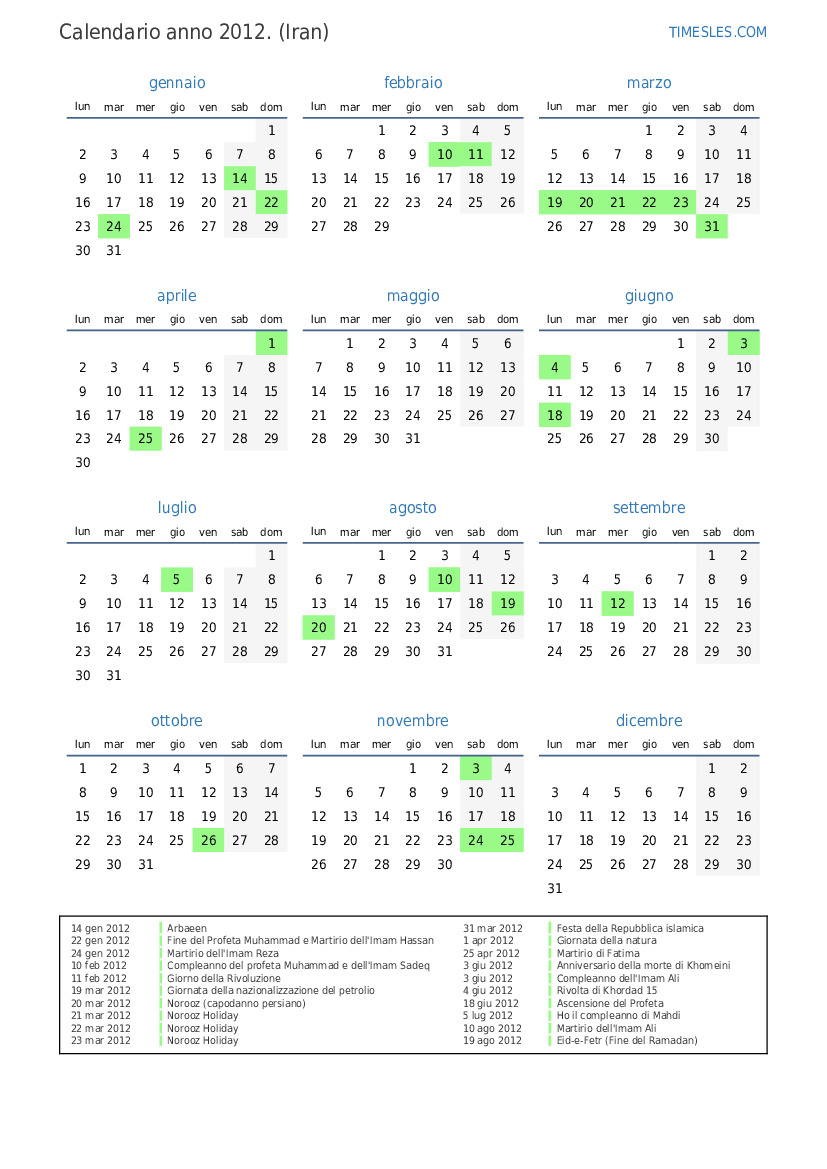 20 ago 2012 Eid-e-Fetr (vacanza aggiuntiva)