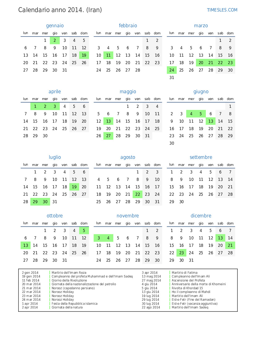 30 lug 2014 Eid-e-Fetr (vacanza aggiuntiva)