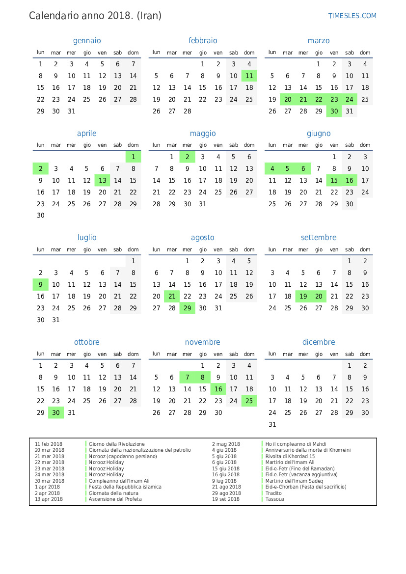 16 giu 2018 Eid-e-Fetr (vacanza aggiuntiva)