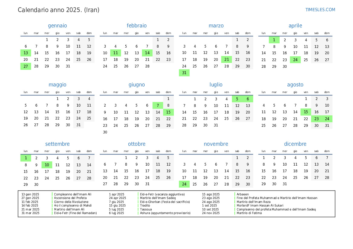 1 apr 2025 Eid-e-Fetr (vacanza aggiuntiva)