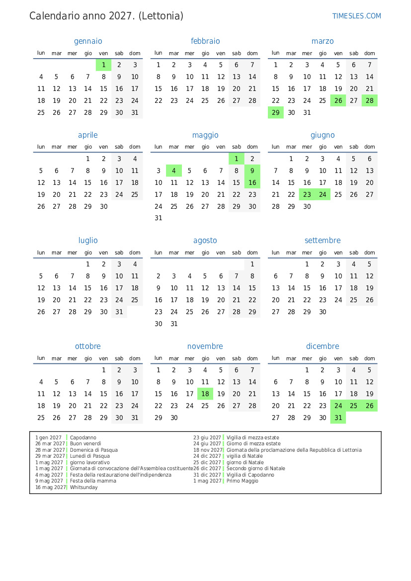 18 nov 2027 Giornata della proclamazione della Repubblica di Lettonia