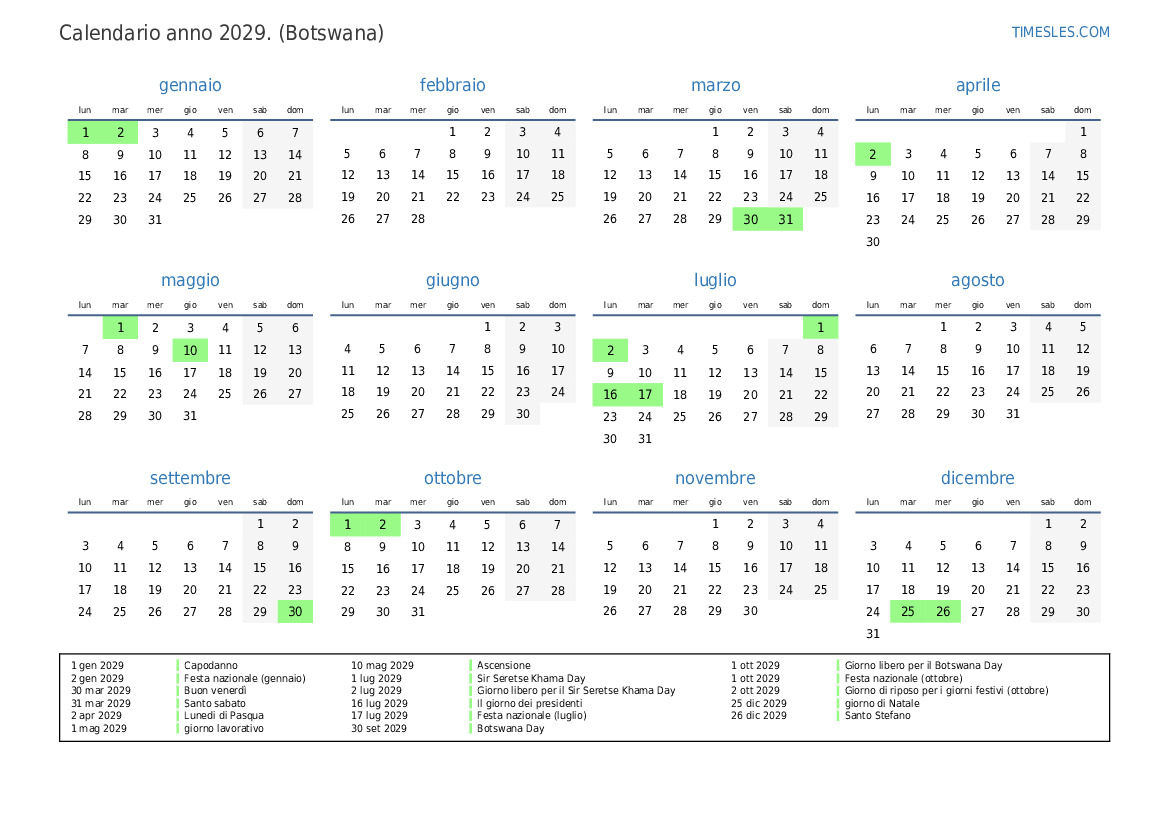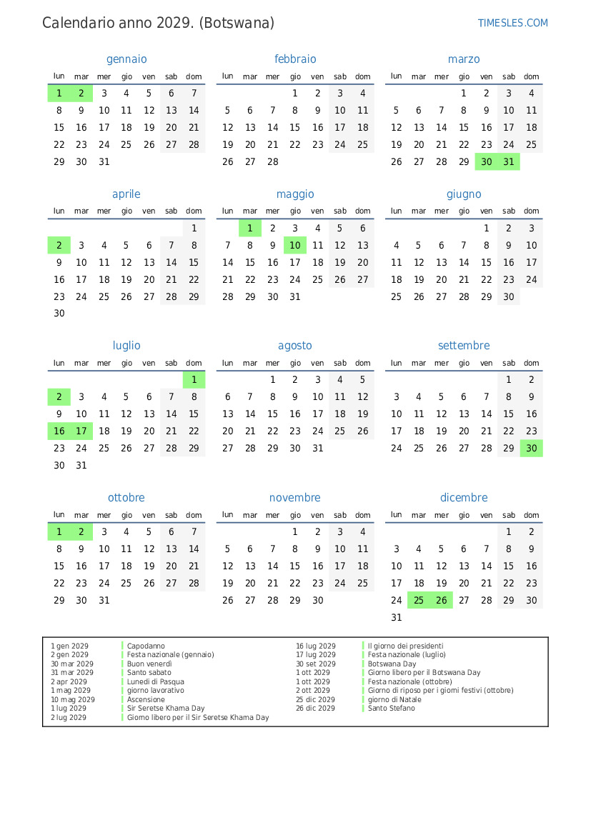 2 lug 2029 Giorno libero per il Sir Seretse Khama Day