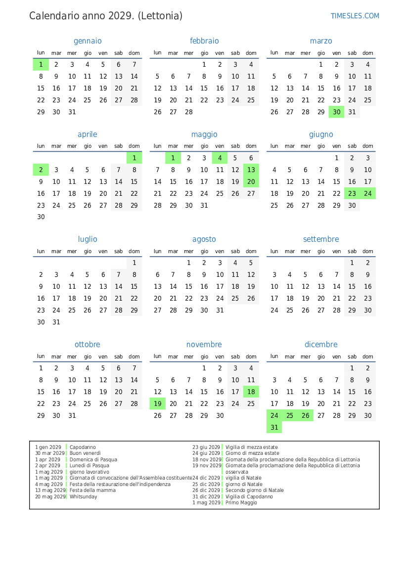 18 nov 2029 Giornata della proclamazione della Repubblica di Lettonia