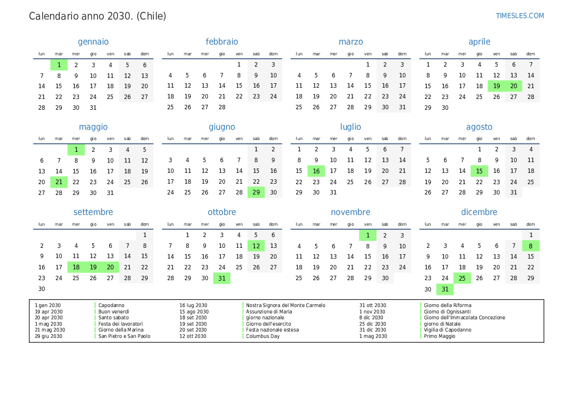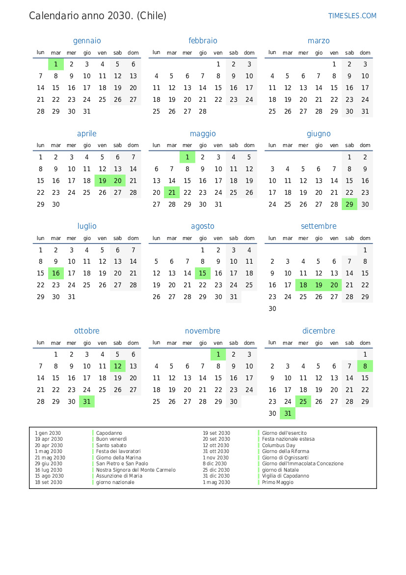 20 set 2030 Festa nazionale estesa