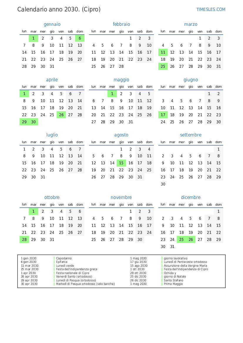 30 apr 2030 Martedì di Pasqua ortodosso (solo banche)