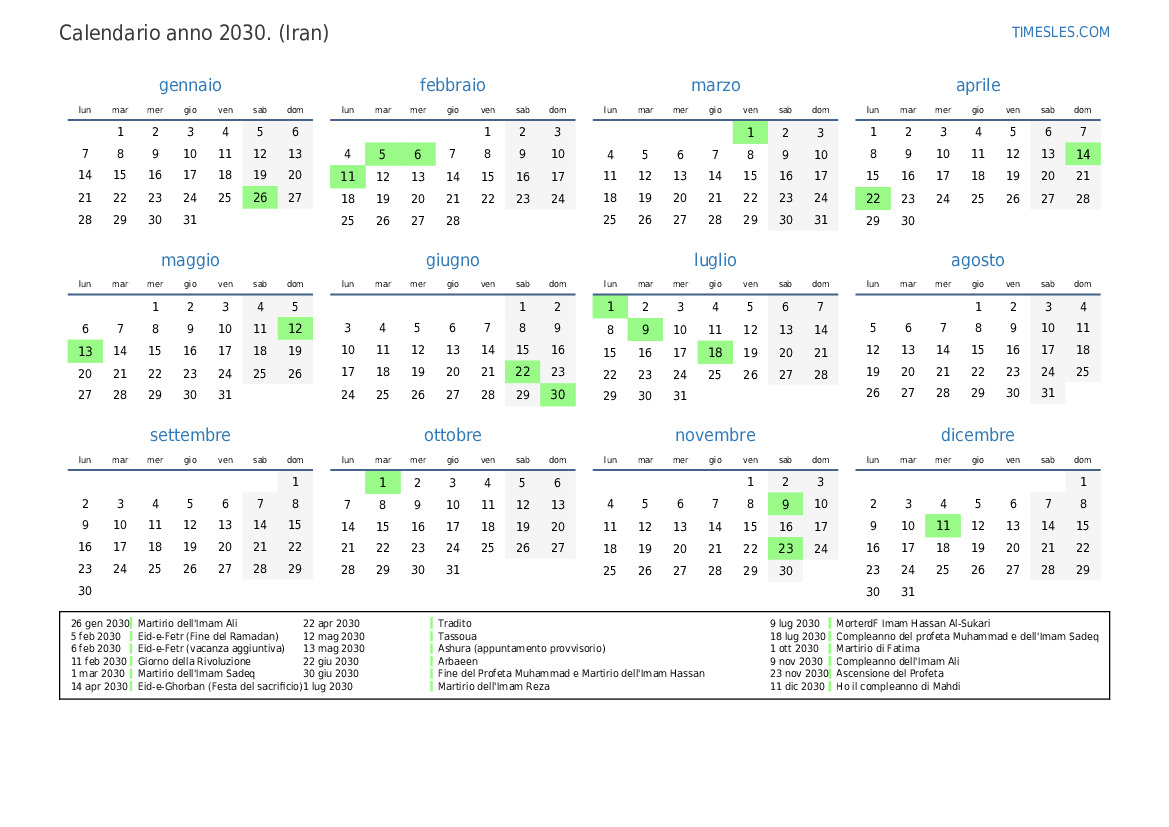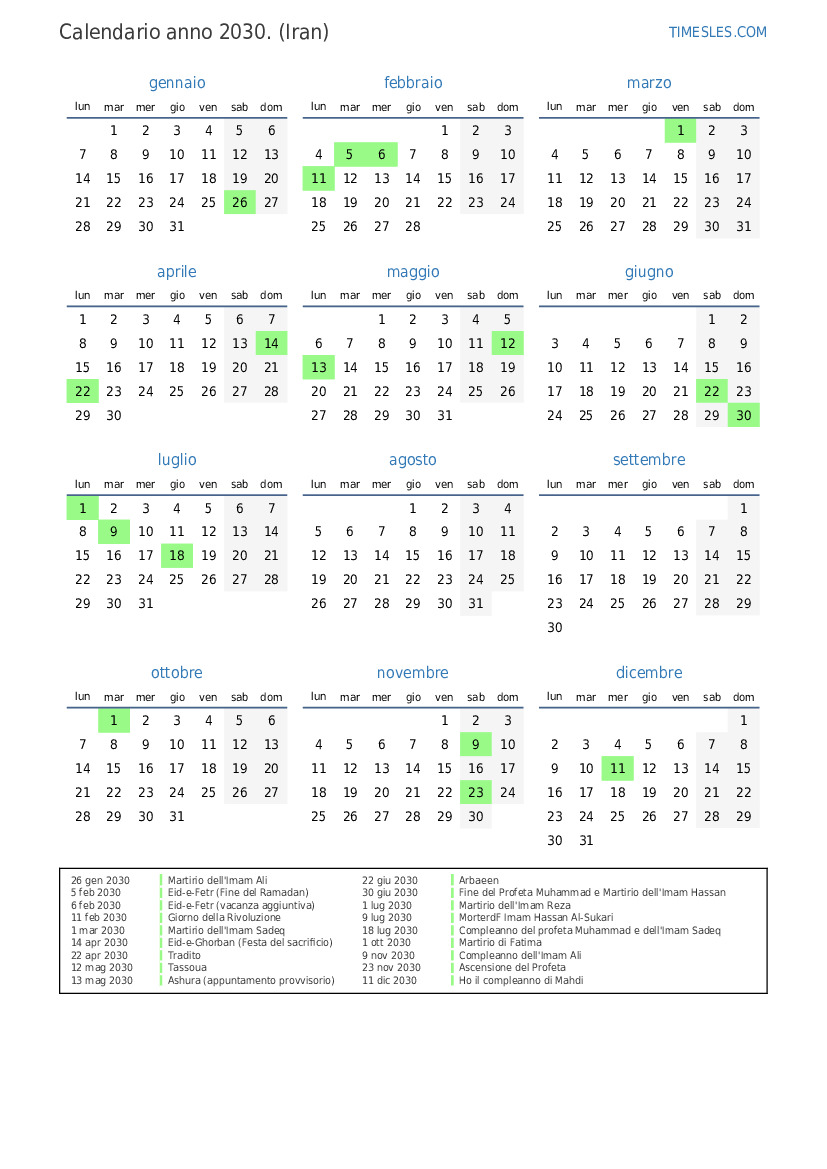 6 feb 2030 Eid-e-Fetr (vacanza aggiuntiva)