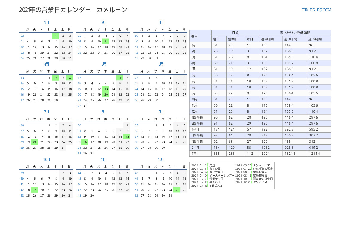 週のある2021年1月の営業日カレンダー。 週5日勤務。 2021年1月カメルーンで1 休日と休日があります。労働時間と延期休日のカレンダー。