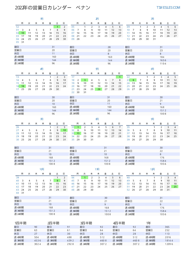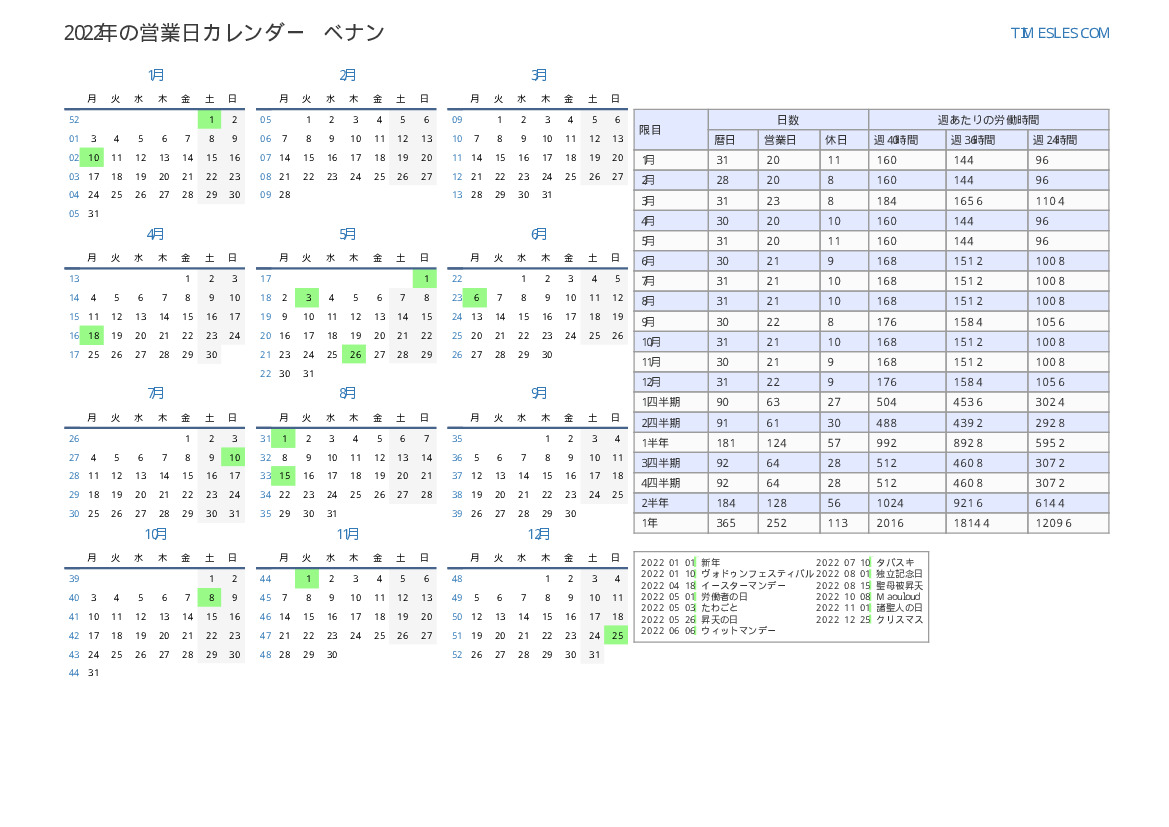 ベナンのために2022年第2四半期の休日と週末の営業日カレンダー