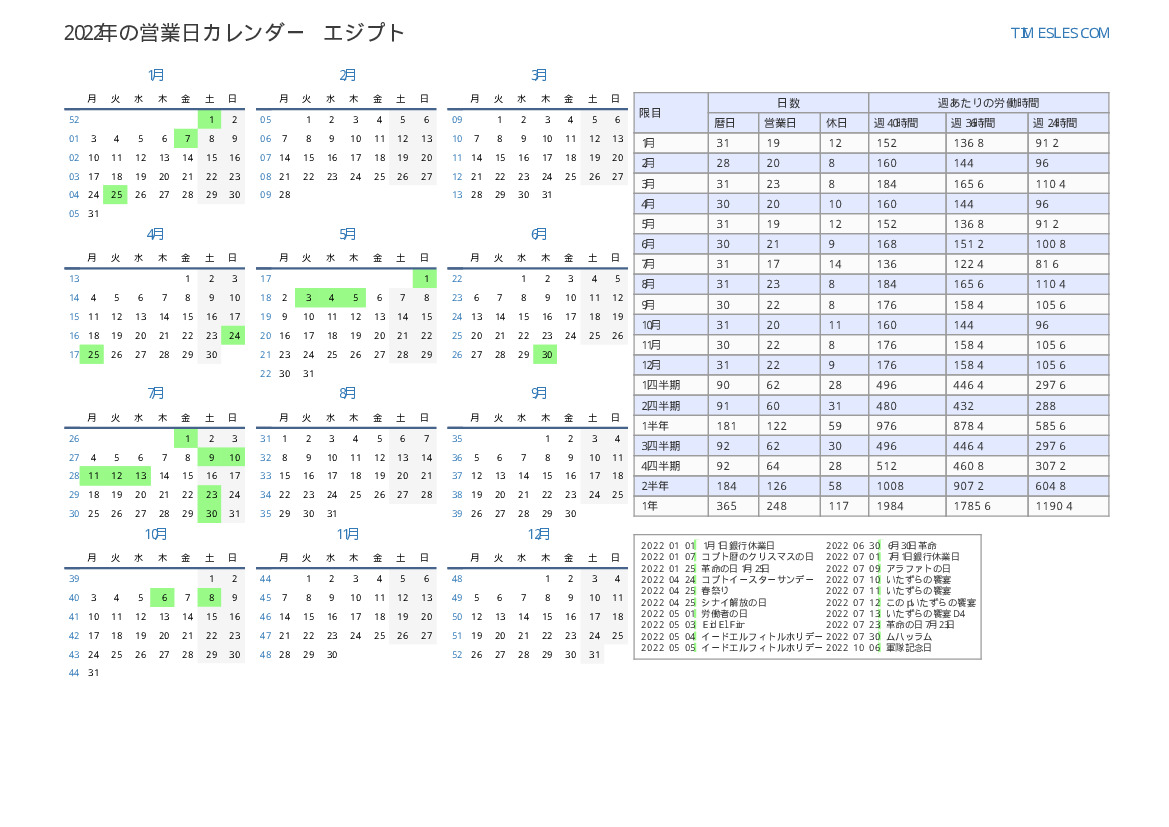 エジプトのために2022年12月のPDF休日カレンダーをダウンロードして印刷します