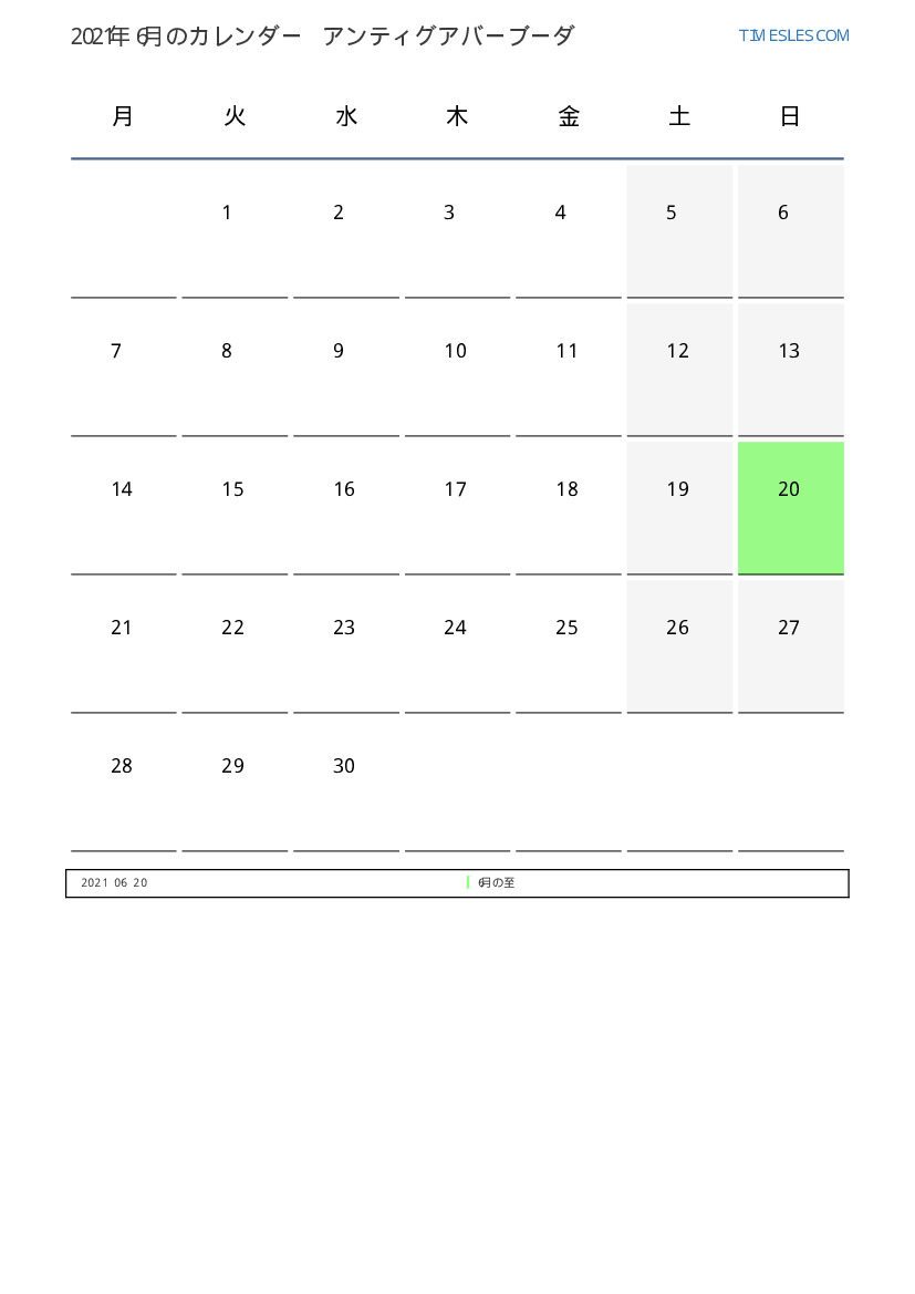 アンティグアバーブーダ2021年6月の休日と週末のPDFカレンダーをダウンロードして印刷します