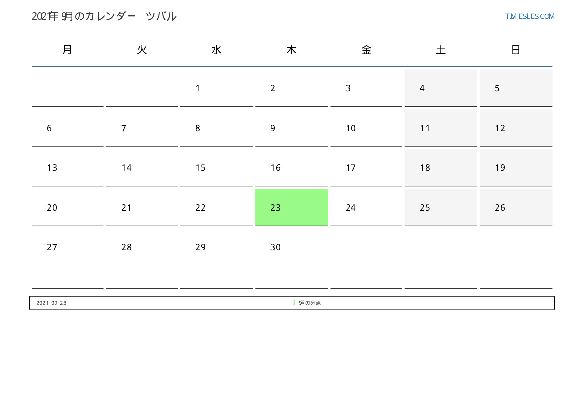 9月には30日が含まれます。 これは2021年の9か月です。一年の季節:秋。 9月は水曜日に始まり、木曜日に終わります。 2021年9月、ツバル語1 休日と休日があります。