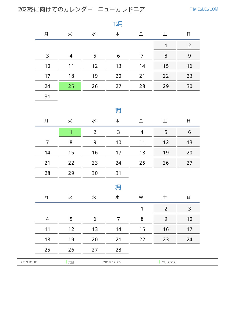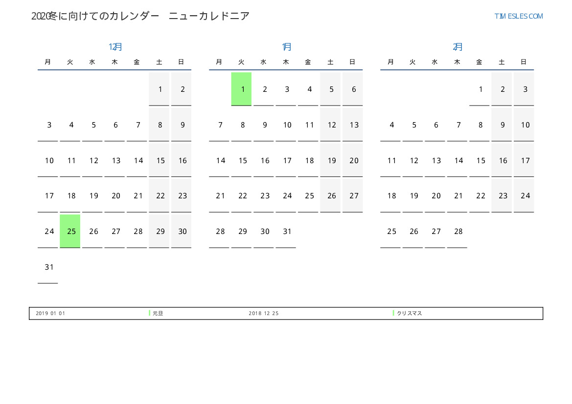 ニューカレドニア向け2019年秋に向けてのカレンダー