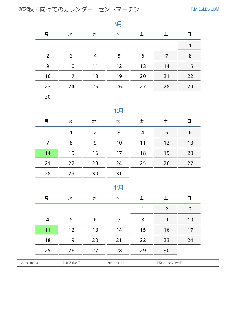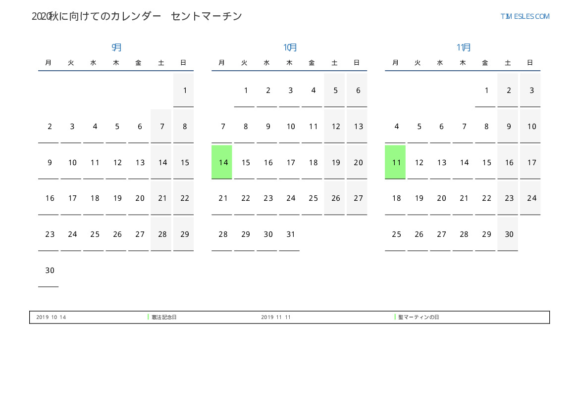 SintMaartenの場合2019年秋に向けてのカレンダー
