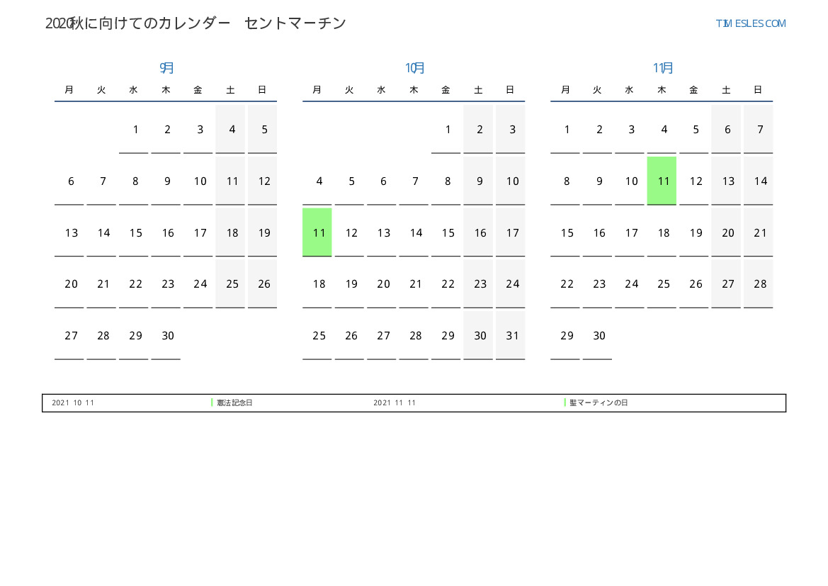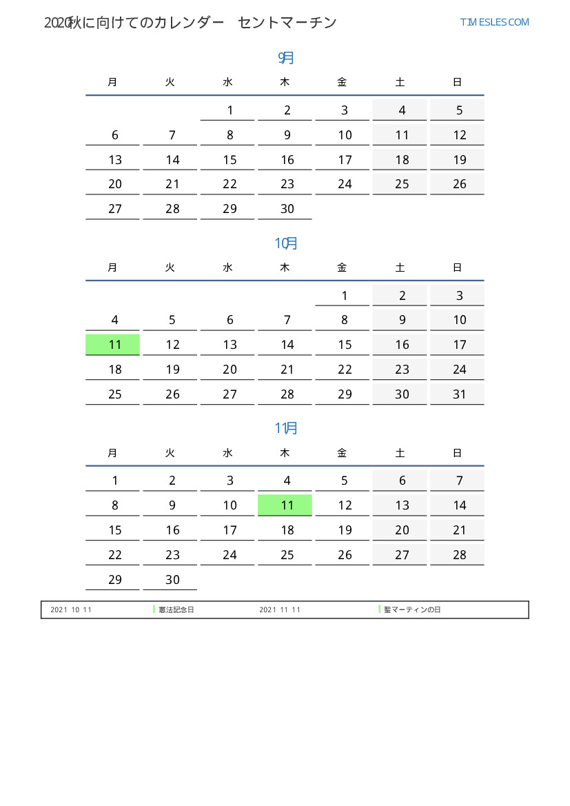 SintMaartenの場合2021年秋に向けてのカレンダー