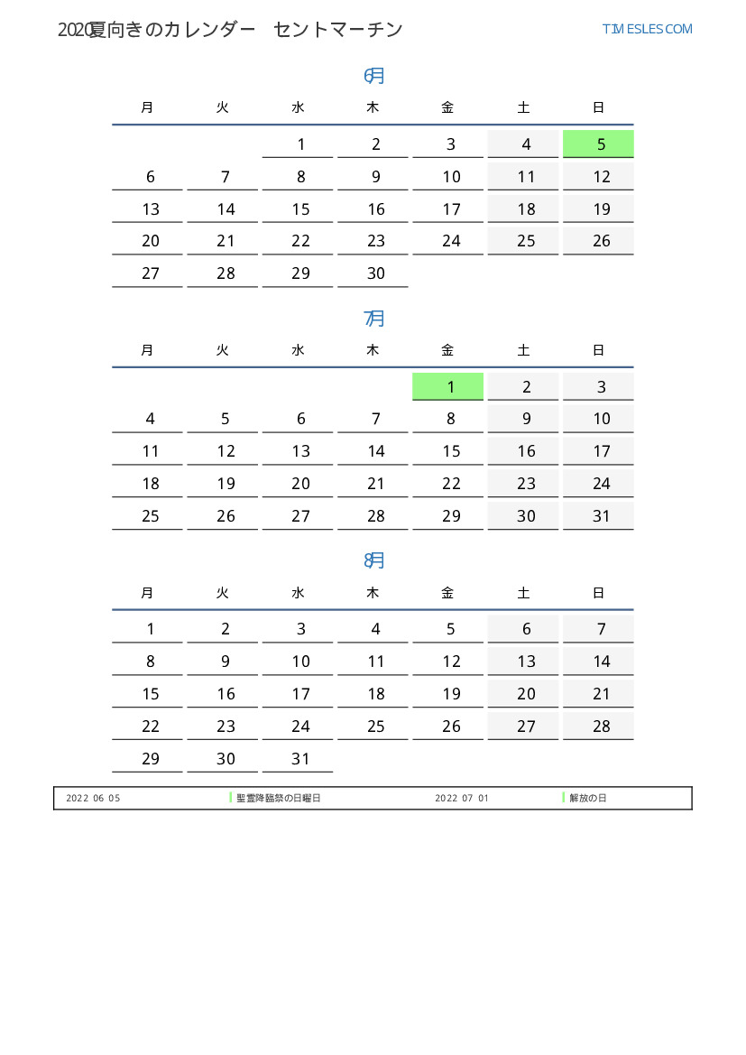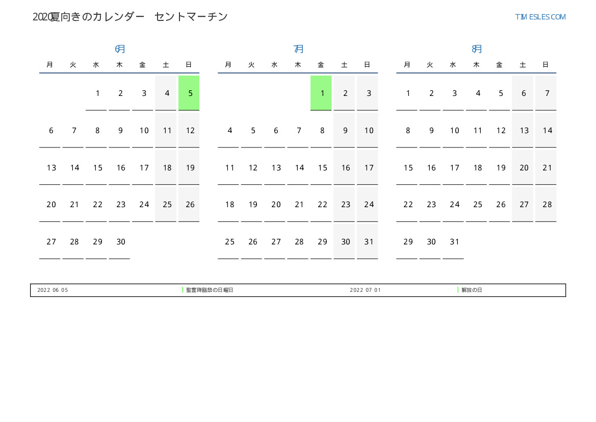 SintMaartenの場合2022年夏向きのカレンダー