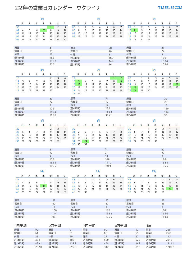 ウクライナ向け2021年12月の就業日
