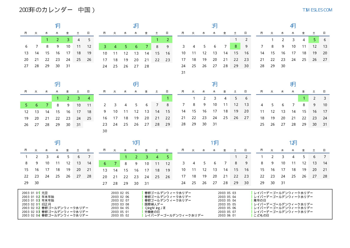 2003/10/03 建国記念日ゴールデンウィークホリデー