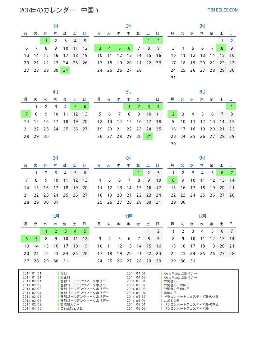 2014/02/01 春節ゴールデンウィークホリデー