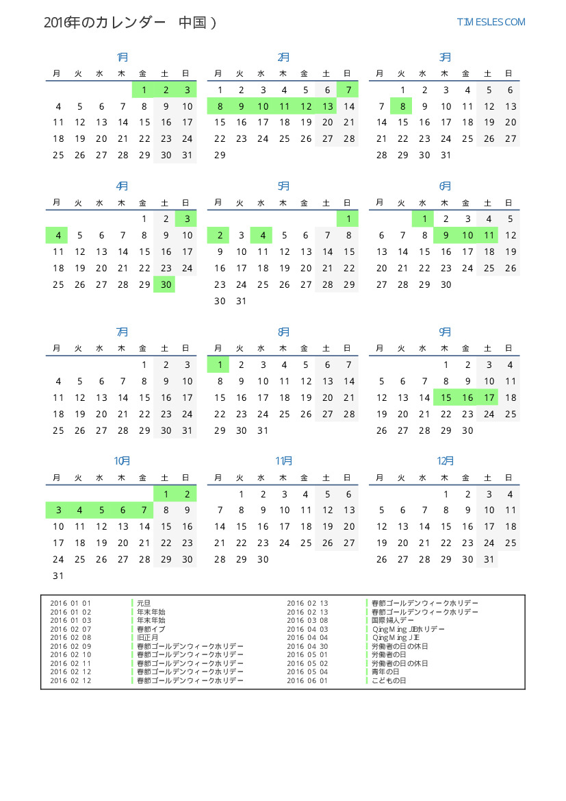 2016/02/10 春節ゴールデンウィークホリデー