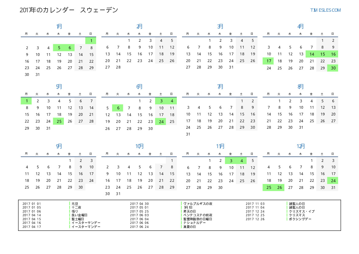 スウェーデン向け2017年カレンダー