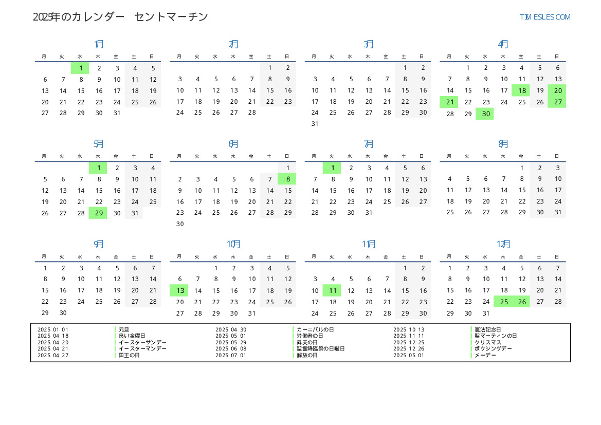 グレゴリオ暦、うるう年ではありません、年間365日。 2025年には、シントマールテンで19 休日と休日。 中国東部の暦では、2000年ヘビの年。 年は水曜日にに始まり、水曜日に終わります。